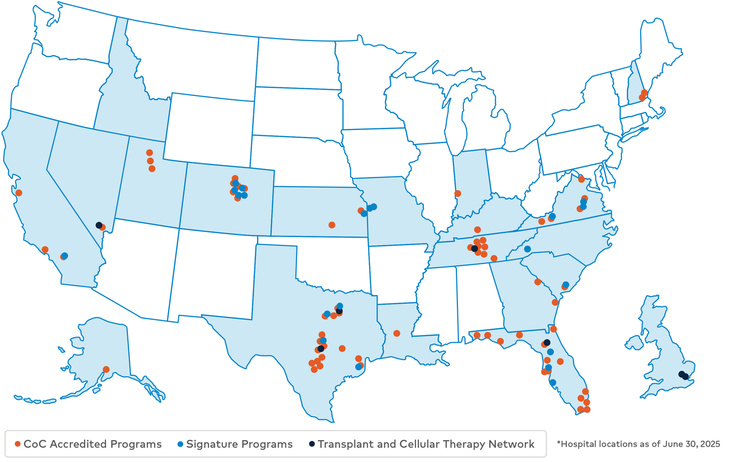 - 70+ accredited Commission on Cancer (CoC) hospitals